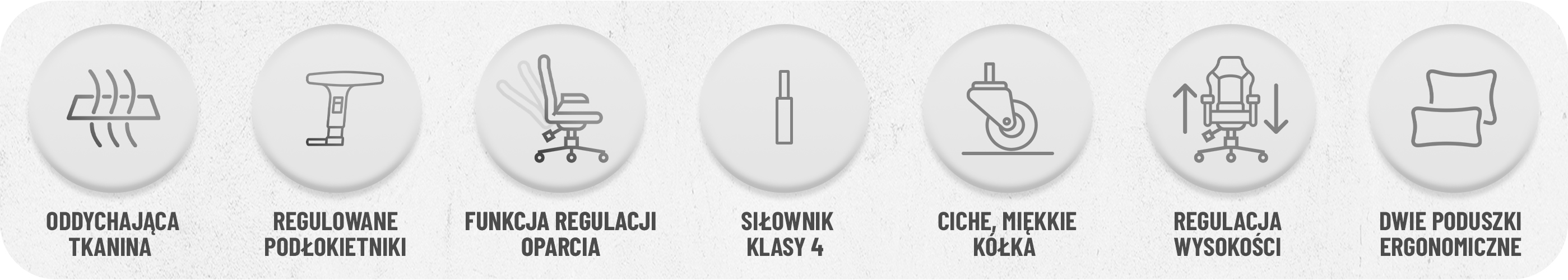 Wyprofilowane podparcie lędźwiowe oraz wsparcie karku i głowy pomagają utrzymać prawidłową postawę niwelując ból kręgosłupa. Poduszki posiadają możliwość regulacji, a także wymiany wypełnienia