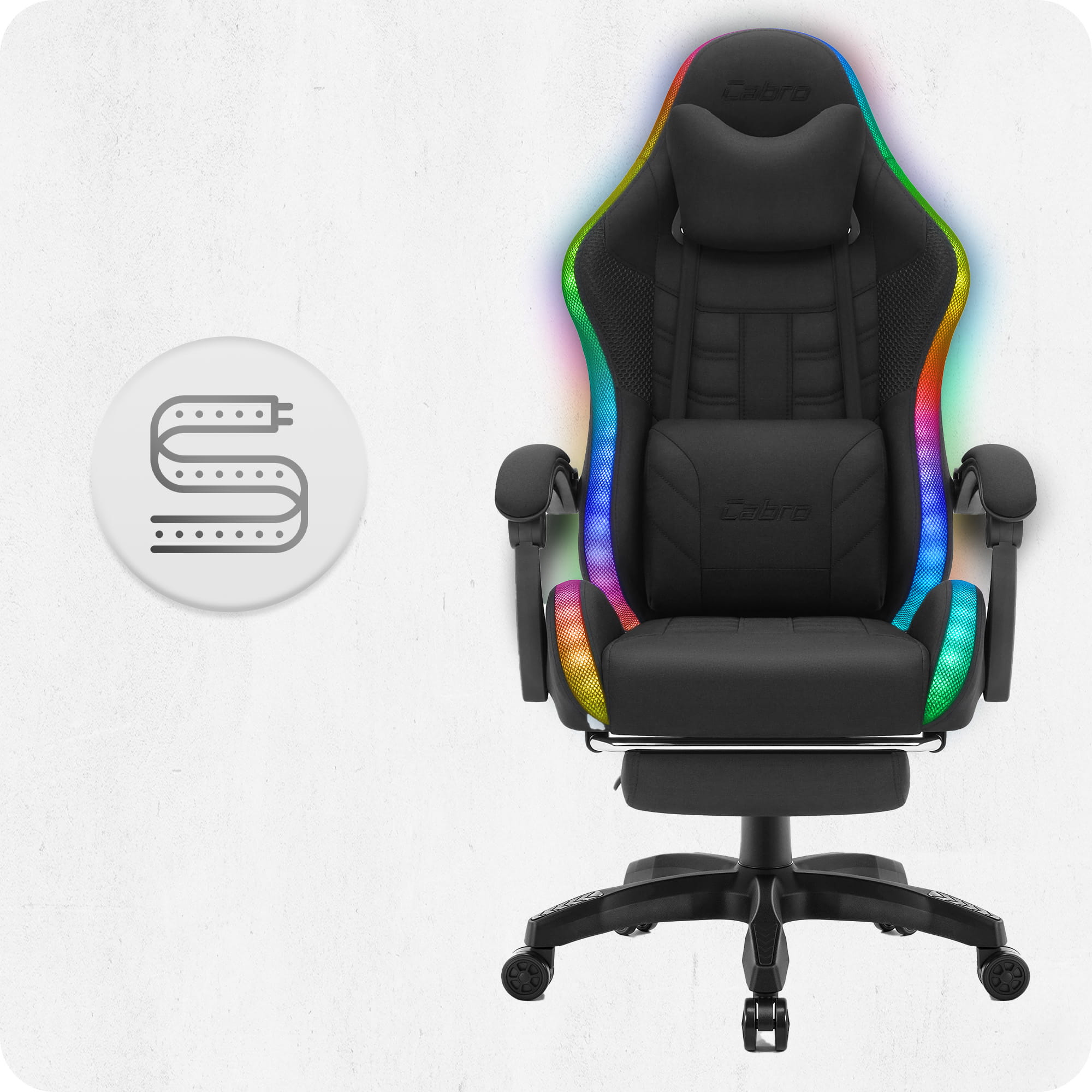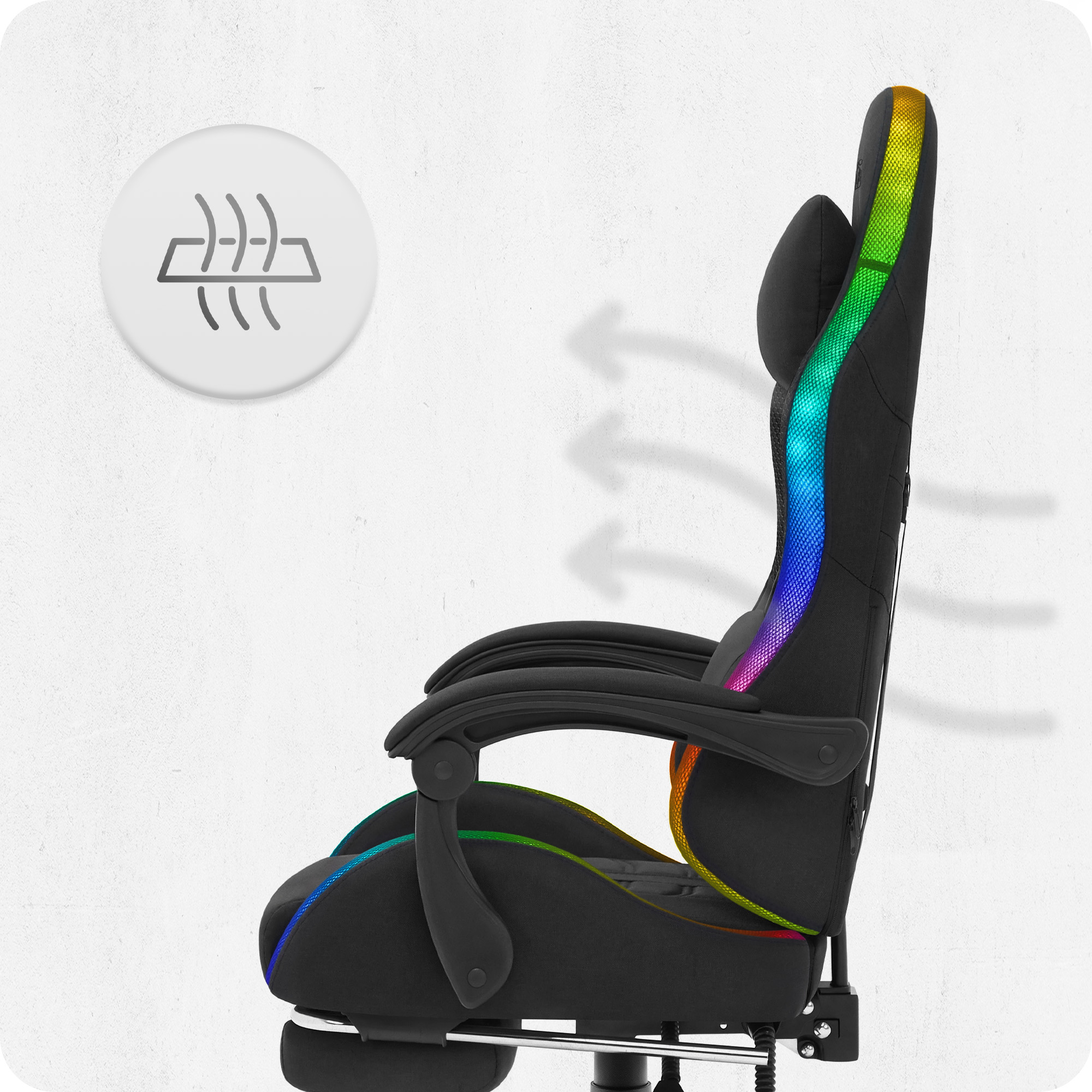Fotel gamingowy C501 Czarny LED Tkanina