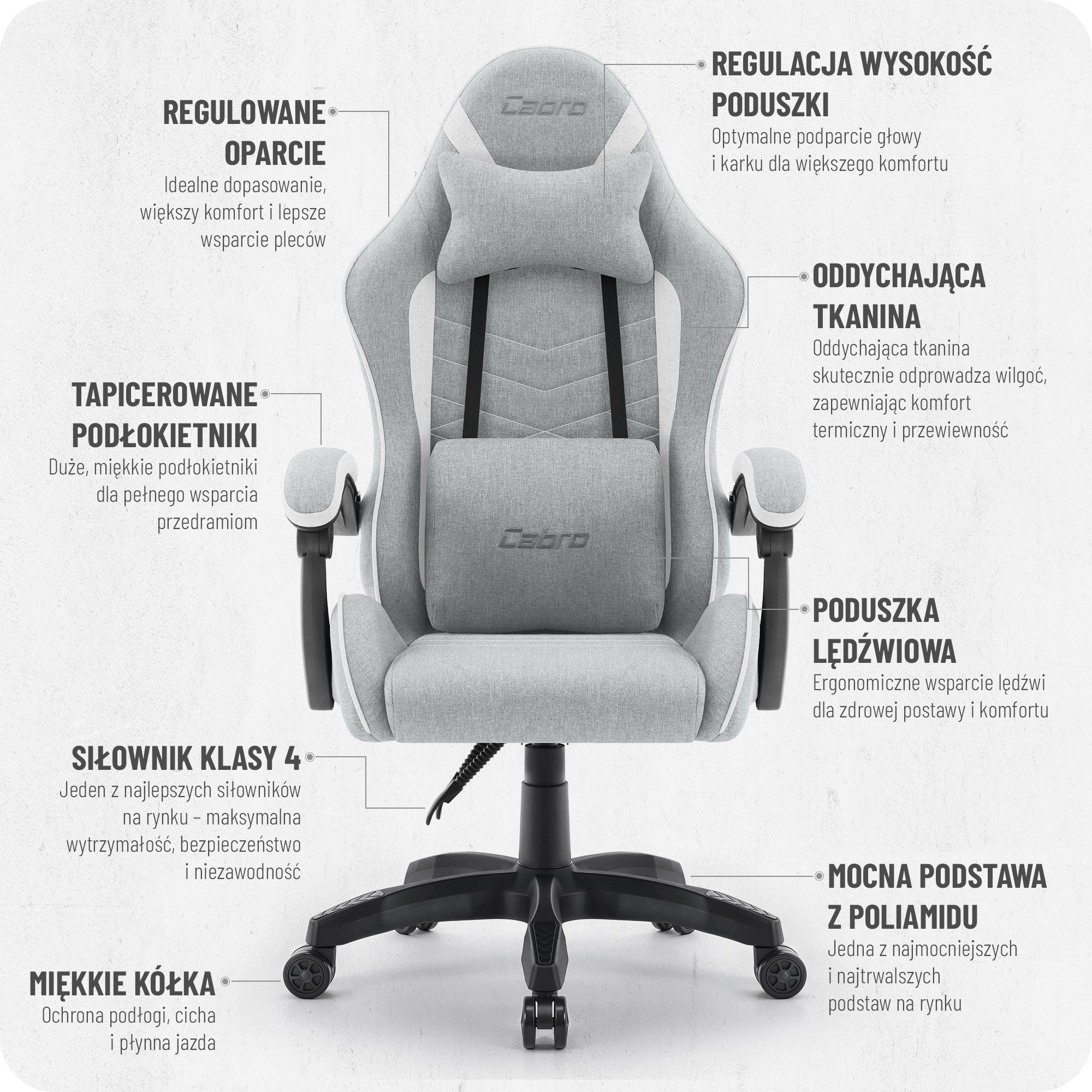 Fotel gamingowy Cabro C500 Szary- Biały Tkanina