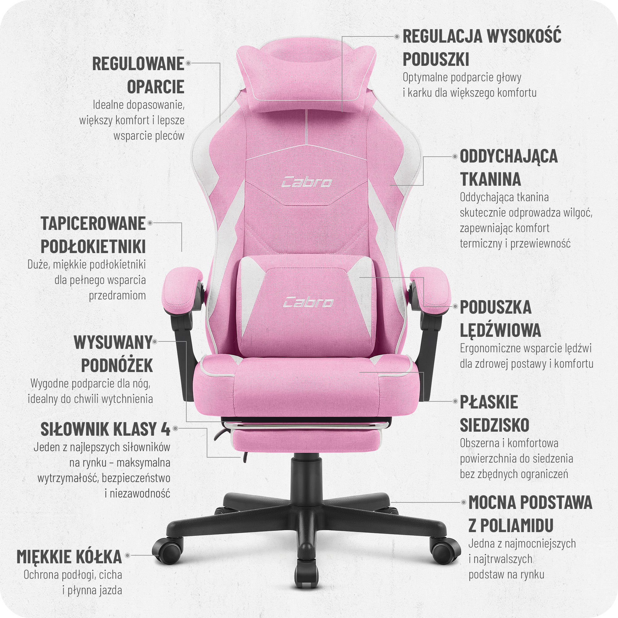 Fotel gamingowy Cabro C502 Różowy - Biały Tkanina