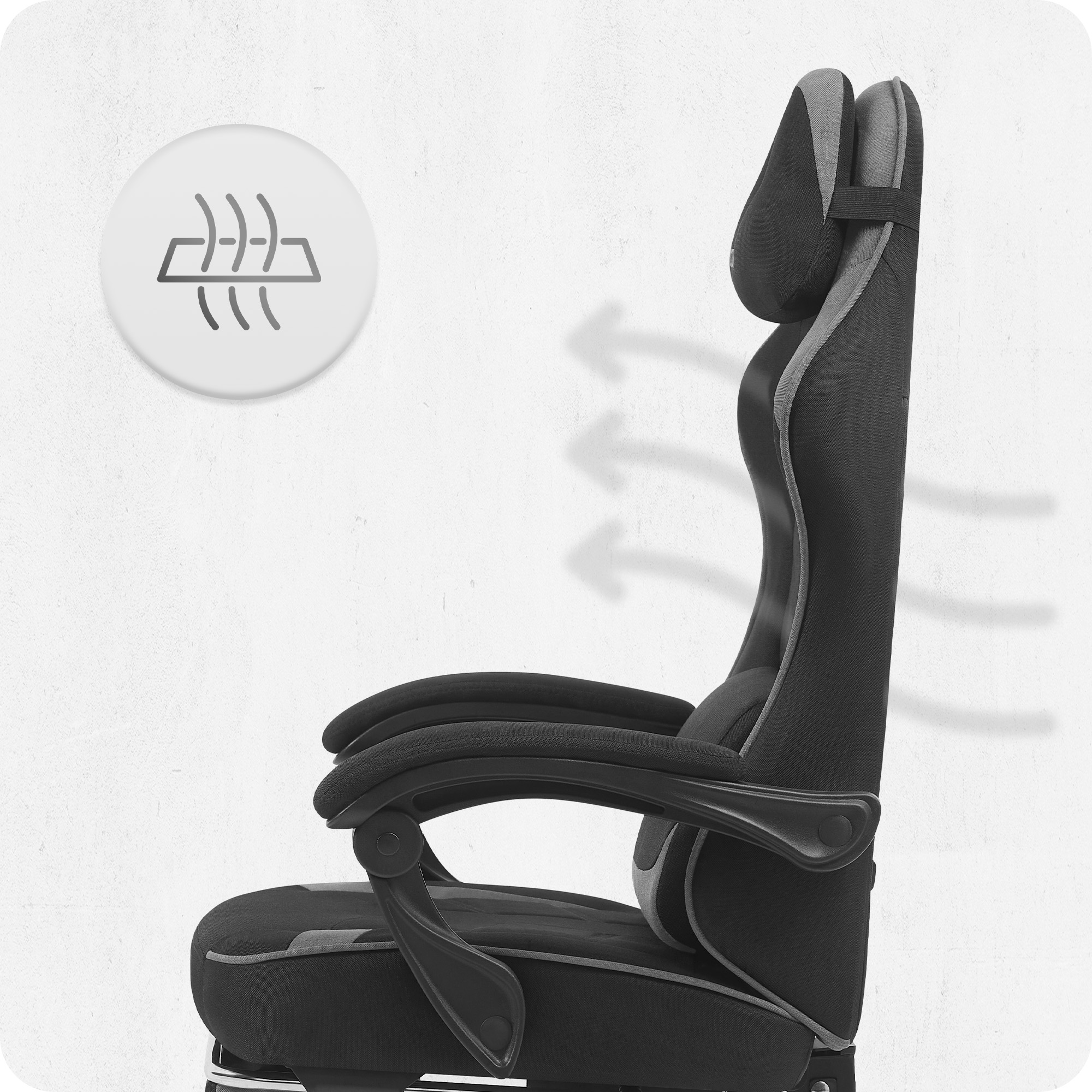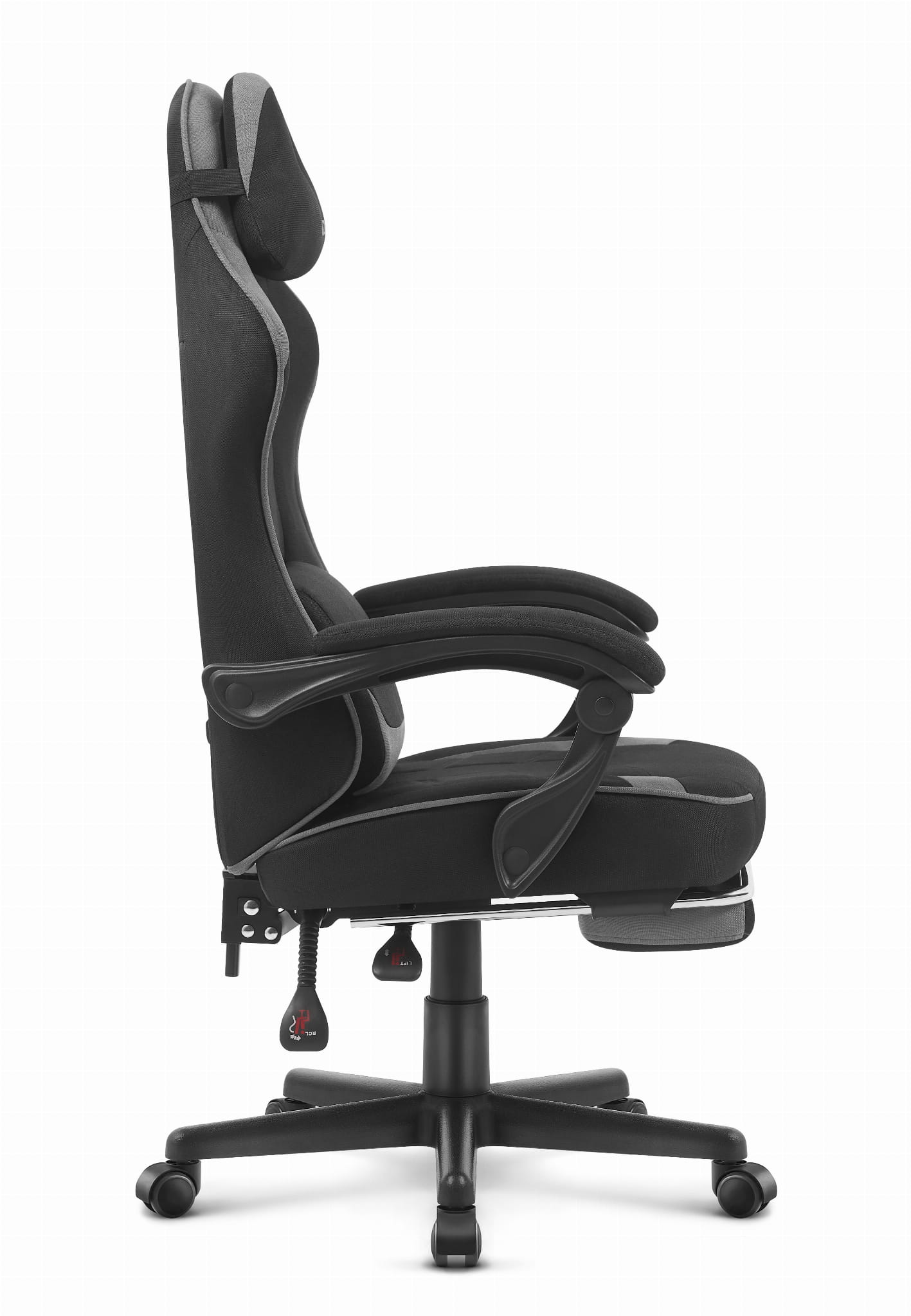 Tkaninowy fotel gamingowy Cabro C504 charakteryzuje się nowoczesnym, dynamicznym designem, który doskonale pasuje do intensywnych sesji gamingowych. Wyposażony w wysuwany podnóżek, umożliwia wygodne rozluźnienie nóg w trakcie przerw. Płaskie siedzisko zapewnia stabilność i komfort, a jednocześnie przestronność, pozwalając na pełną swobodę podczas siedzenia. Konstrukcja fotela została zaprojektowana z myślą o długotrwałym komforcie, a użyte materiały gwarantują wytrzymałość i solidność. Cabro C504 to fotel, który doskonale łączy funkcjonalność z dynamicznym stylem.